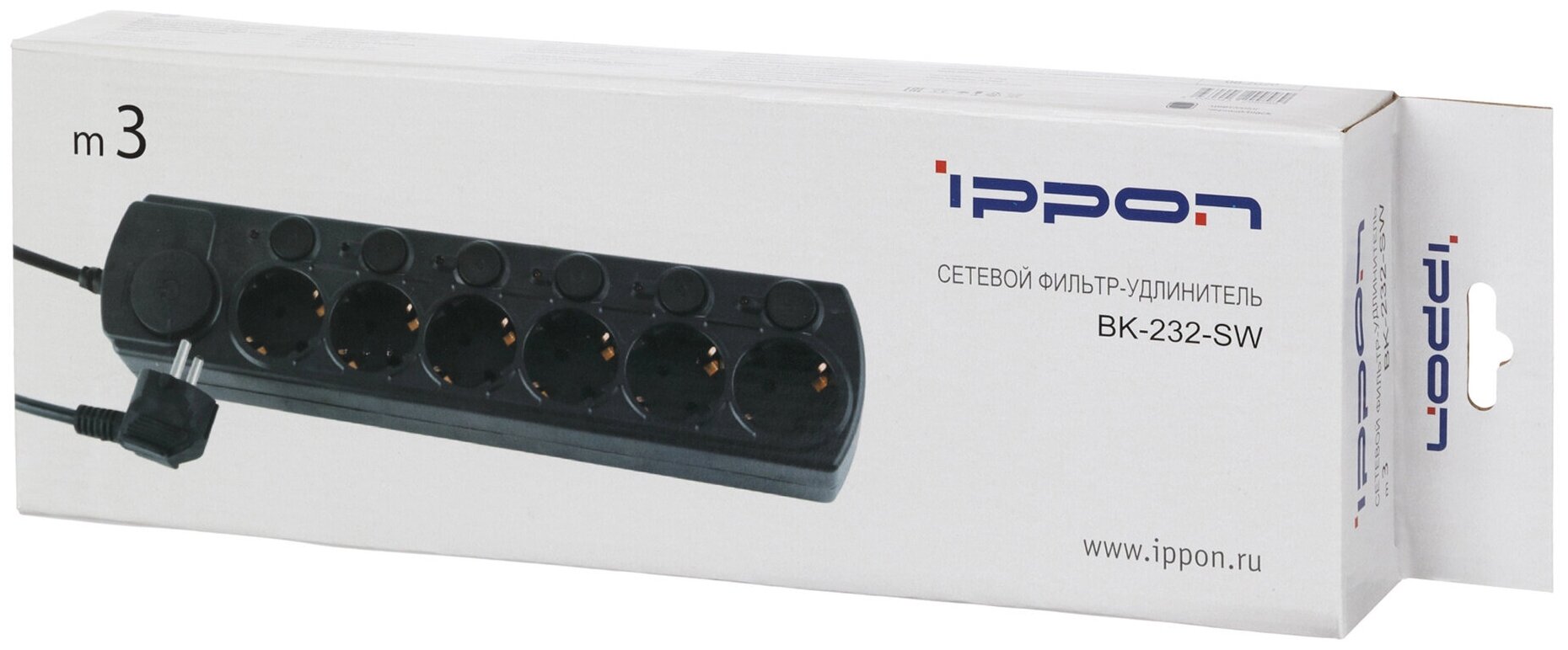 Ippon Сетевой фильтр Bk232-sw (6 розеток, 3 м) черный (коробка) (1192746) .
