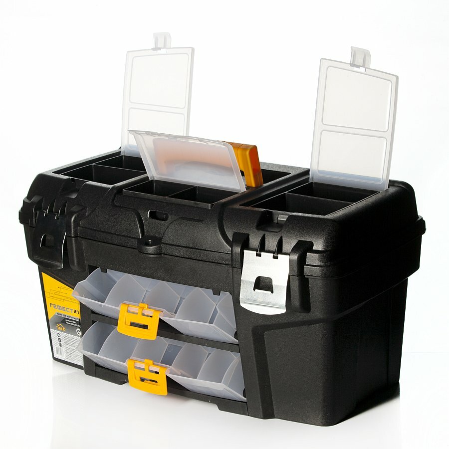 10 цен на Ящик для инструментов с металлическими замками "ГЕФЕСТ 21" (черный с желтым)