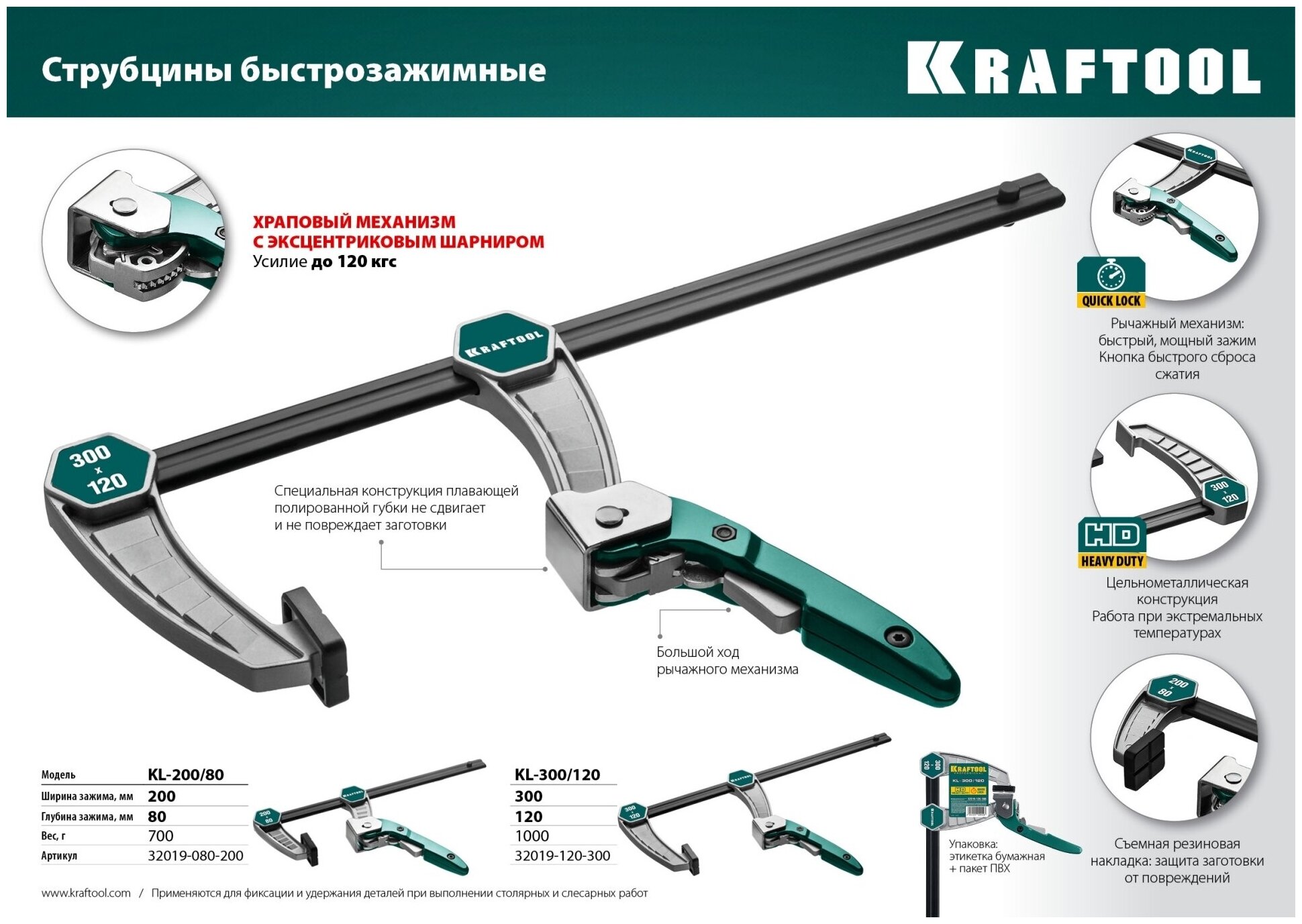 KRAFTOOL KL-300/120 струбцина быстрозажимная 300/120 мм, KRAFTOOL 2 906 ₽