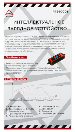 Зарядное устройство Arnezi Smart X3 6В/12В 1Ач/4Ач акб 10-120Ач R7990003 . информация:
