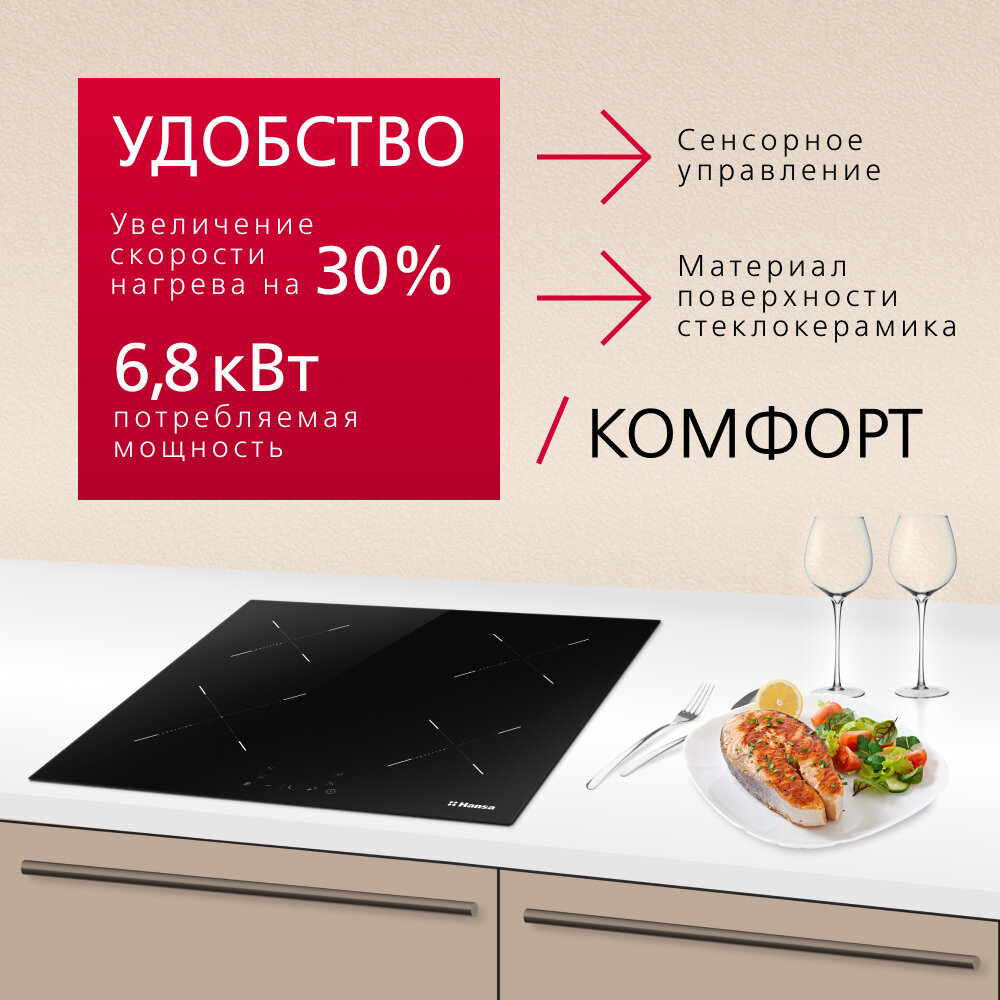Индукционная варочная панель Hansa BHI68302, стеклокерамическая поверхность, блокировка от детей, таймер, функция Booster, автоотключение, индикация остаточного тепла, черная 17 938 ₽