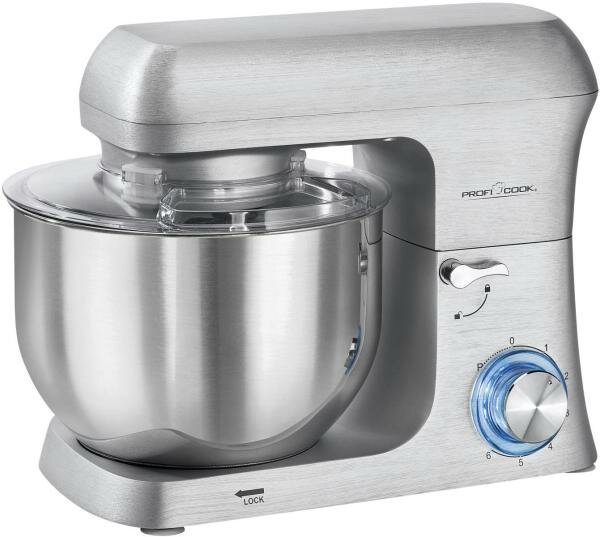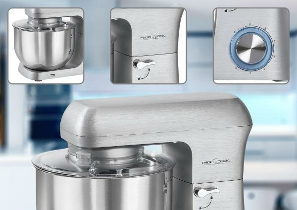 Тестомес ProfiCook PC-KM 1188 с корпусом из цельного алюминия, литым под давлением, мощный профессиональный двигатель с длительным сроком службы, 1500 Вт, 8 уровней скорости, чаша из нержавеющей стали объемом 6 л, схема безопасности, серебристый цвет