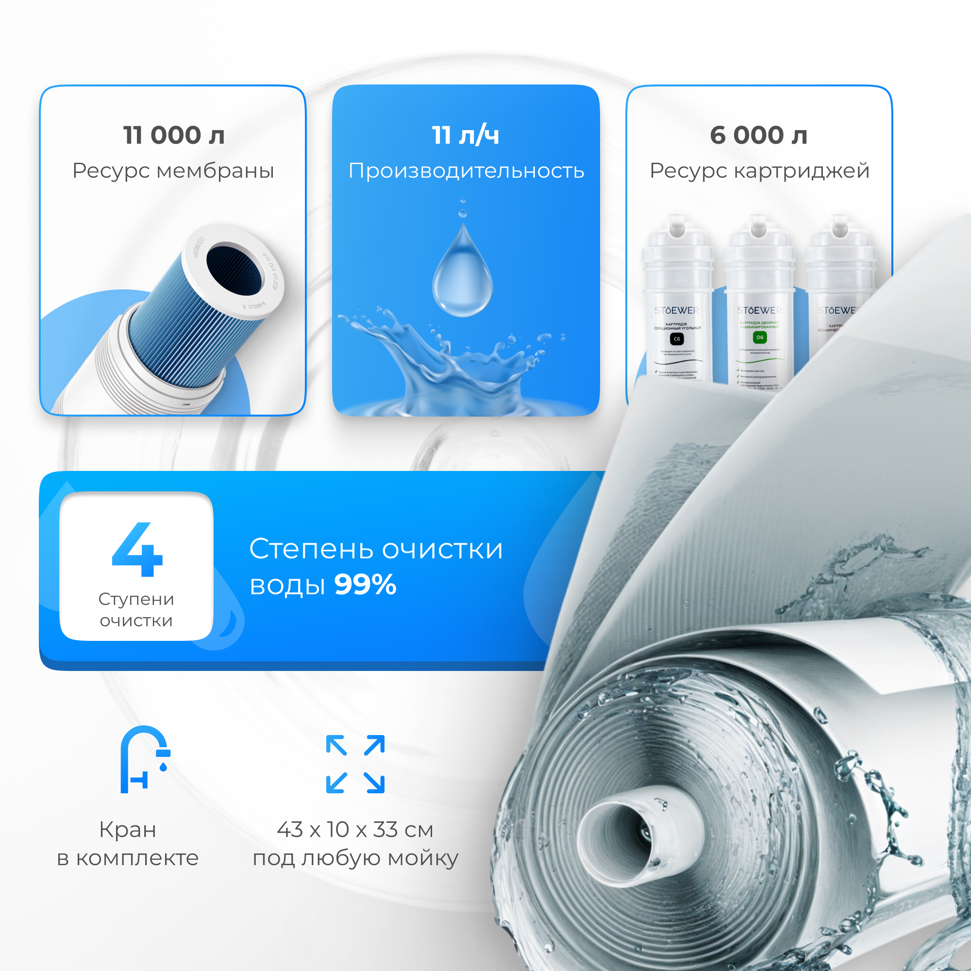| Ресурс стандартного фильтрующего модуля | 6000 л |