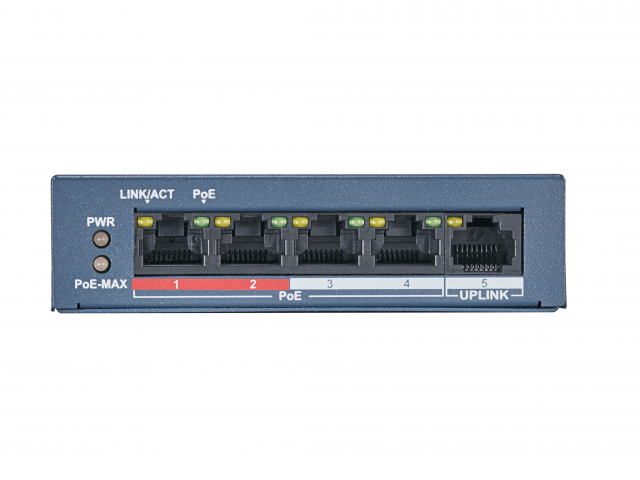Коммутатор Hikvision HiWatch DS-S504P(B) 5x100Mb 4PoE+ 35W неуправляемый