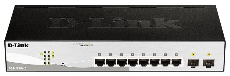 D-Link DGS-1210-10 FL1A Управляемый коммутатор 2 уровня с 8 портами 10 100 1000Base-T и 2 портами 1000Base-X SFP 6 925 ₽