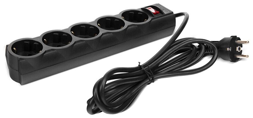 CBR Сетевой фильтр CSF 2505-1.8 Black CB, 5 евророзеток, длина кабеля 1,8 метра, цвет чёрный (коробк