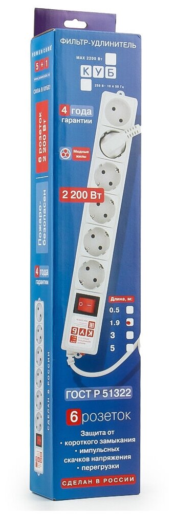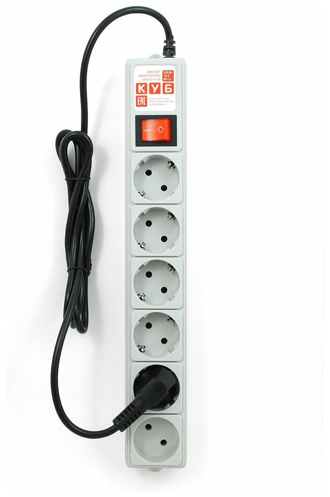 Сетевой фильтр Power Cube "КУБ" SPG(5+1)-B-6, 6 розеток, 10А, 2200Вт, 1.9 м