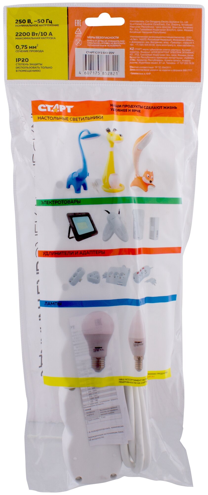 хоз/т_эл.тов_удлинители старт_на 5 раз.3м с зазем.2200 Вт. 36F009 информация: