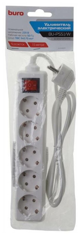 Удлинитель Buro BU-PS5.1/W 1.5м белый информация: