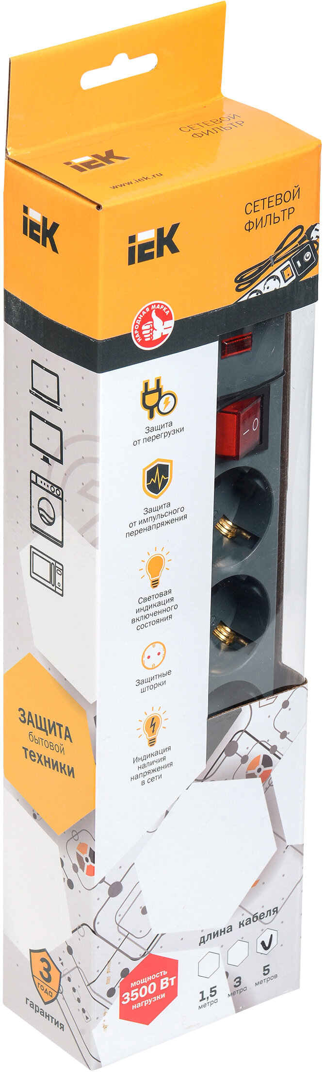Сетевой фильтр IEK WFP10-16-05-03-ZK-K03 5 розеток 3 м информация: