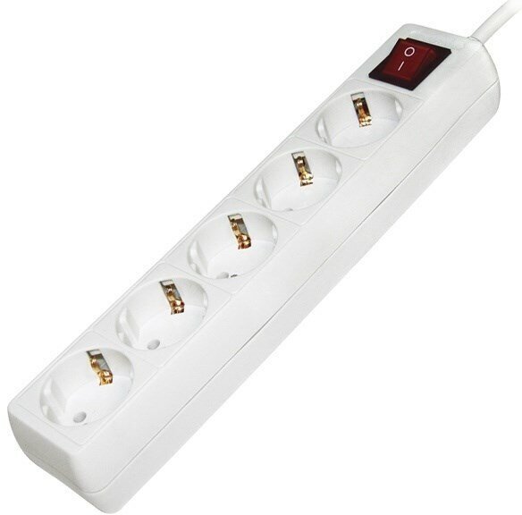 Удлинитель У05К 5х2P+PE с выключателем 3м 3х1мм2 16А/250В IEK белый WYP10-16-05-03-ZK-N