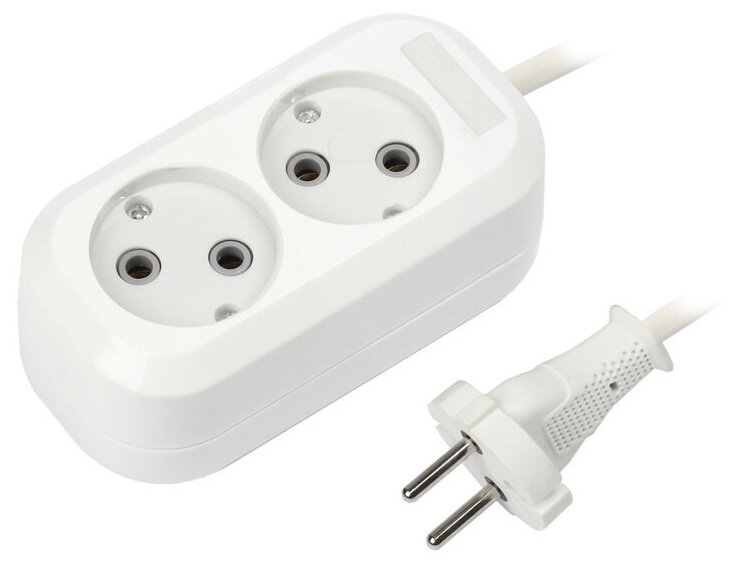 Удлинитель 2гн без З/К 5м белый 10А ПВС 2х1 U-2-5m ЭРА (1/10/840)