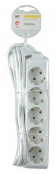 Отзывы на Удлинитель IEK У05, ПВС 3 x 1 мм², с заземлением, 5 розеток, 3 м, белый