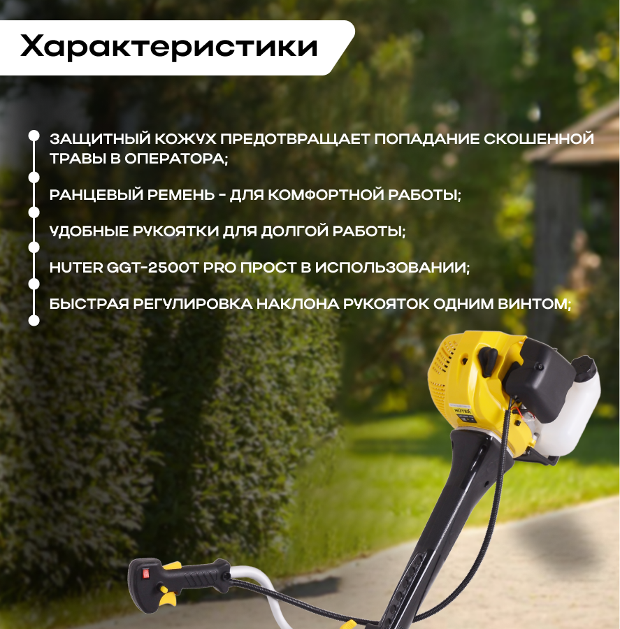Триммер бензиновый HUTER GGT-2500T PRO (с антивибрационной системой) информация: