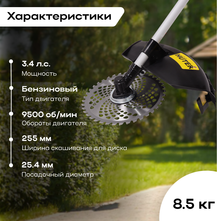 Бензиновый триммер Huter GGT-2500Т PRO, 2500 Вт, 9500±500 об/мин, леска 460 мм