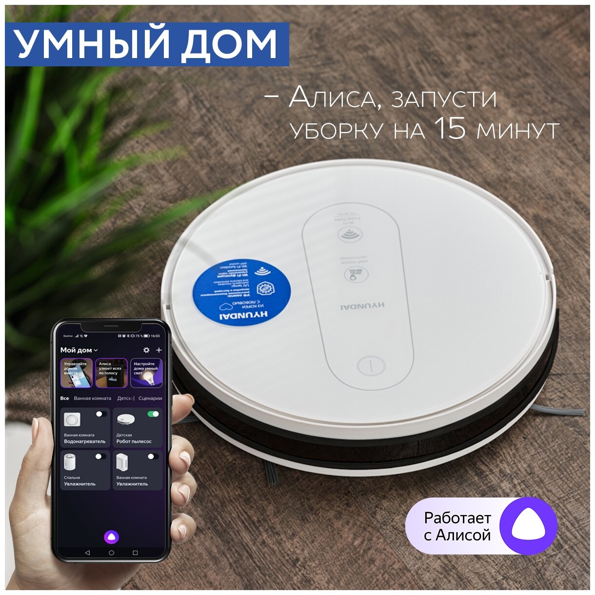 Робот-пылесос Hyundai H-VCRQ90, 2,2 Ач, Li-ion, ЗУ 13 635 ₽