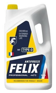 FELIX 430206333 Антифриз FELIX TYPE D желтый -40°С 5кг (PSA Renault Nissan Lada X-Ray Largus)