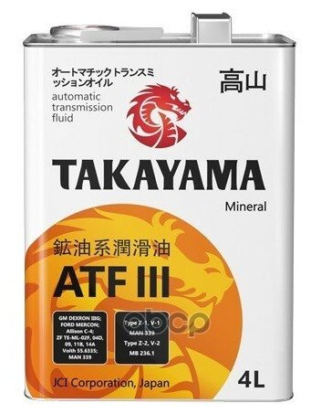 Масло трансмиссионное TAKAYAMA ATF lll 4л (605051) 1 659 ₽