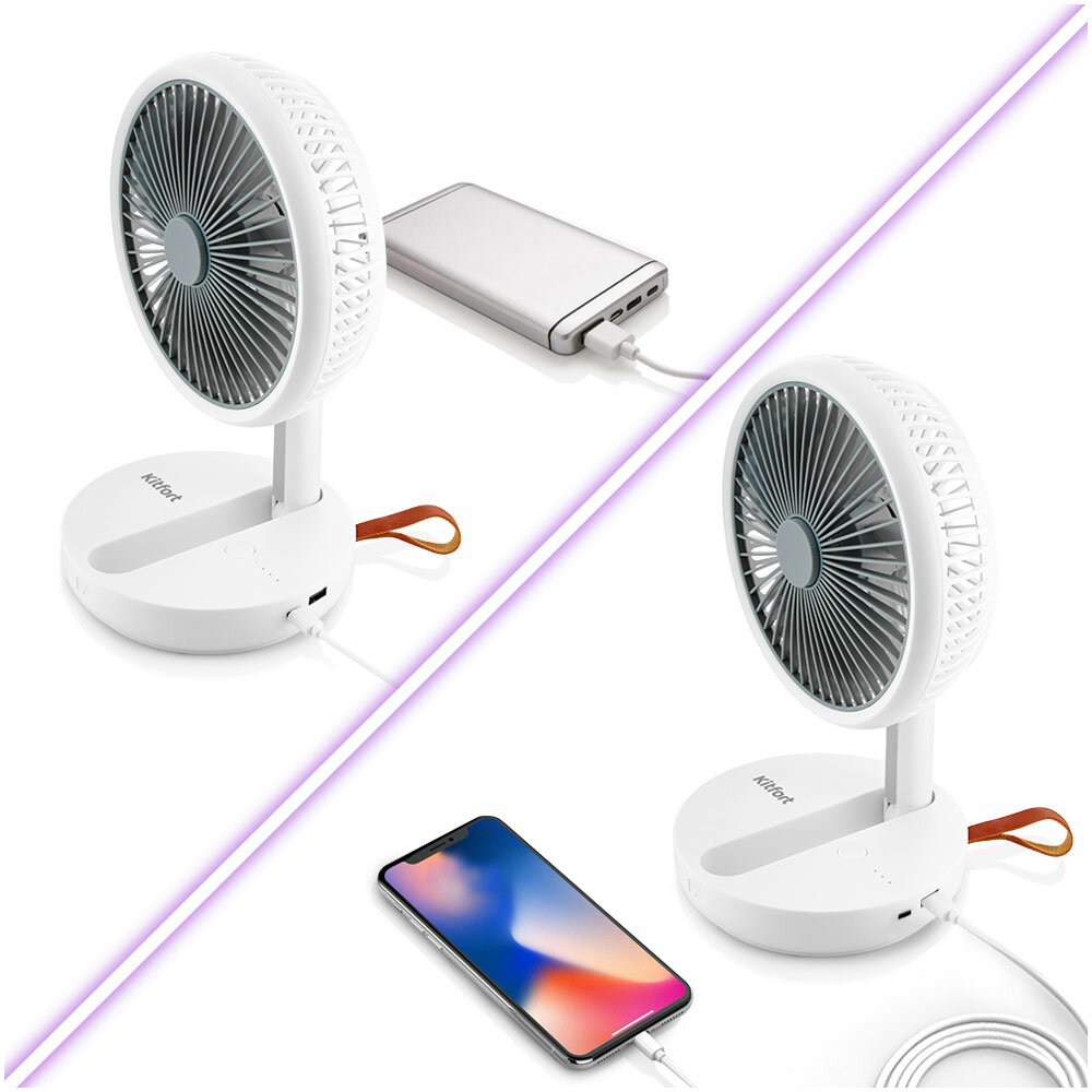 Вентилятор Power bank, складной, портативный, 5 скоростей работы, 3000 мАч, белый