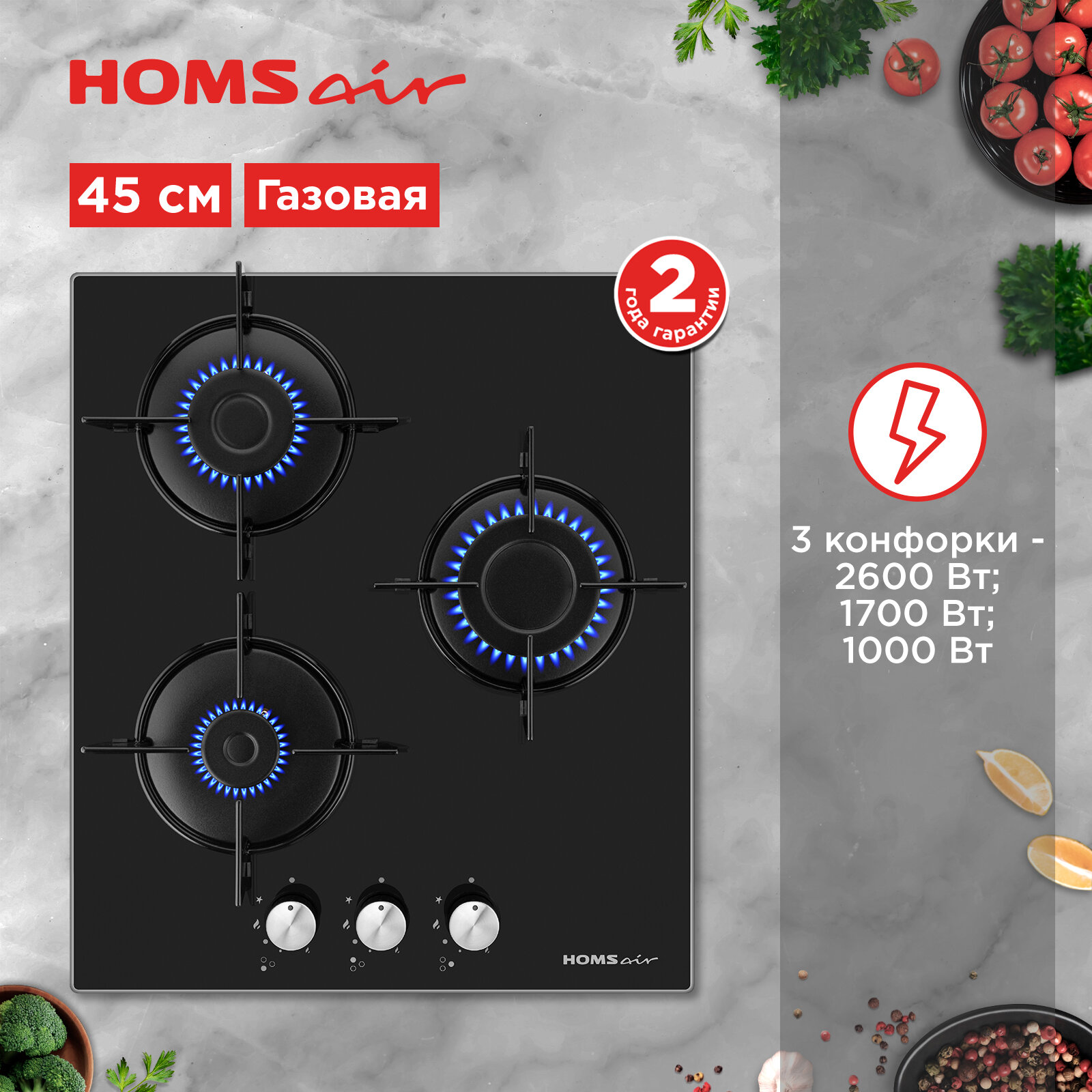 Газовая варочная панель HOMSair HGG431BK информация: