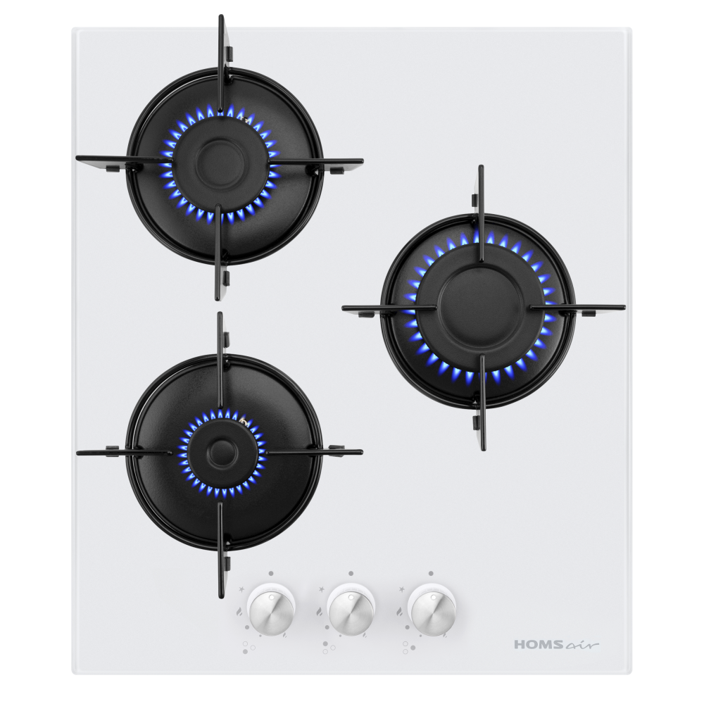 ГазоваяварочнаяповерхностьHOMSairHGG431WH[закал.стекло,конф.-3шт,эл-поджиг.,реш.-эмал.ста