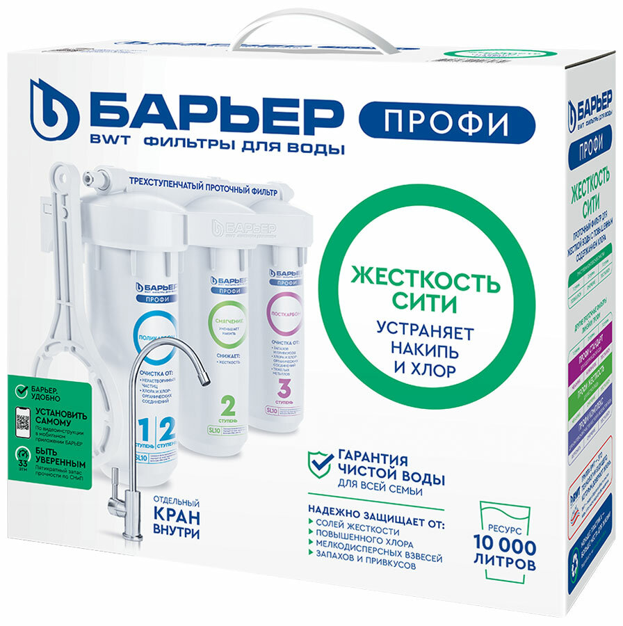 10 цен на Фильтр под мойку для очистки воды трехступенчатый барьер профи Жесткость Сити Лайт защищает от накипи