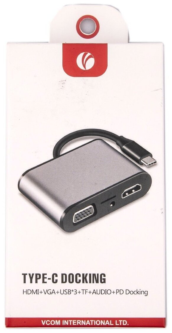 Aдаптер USB3.1 Type-CM-->HDMI +VGA+3XUSB +PD charging+TF+AUDIO,Aluminum Shell, VCOM информация: