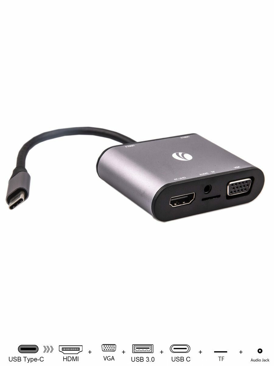 VCOM CU425M Адаптер USB3.1 Type-CM-->HDMI +VGA+3XUSB +PD charging+TF+AUDIO,Aluminum Shell, VCOM 1 931 ₽