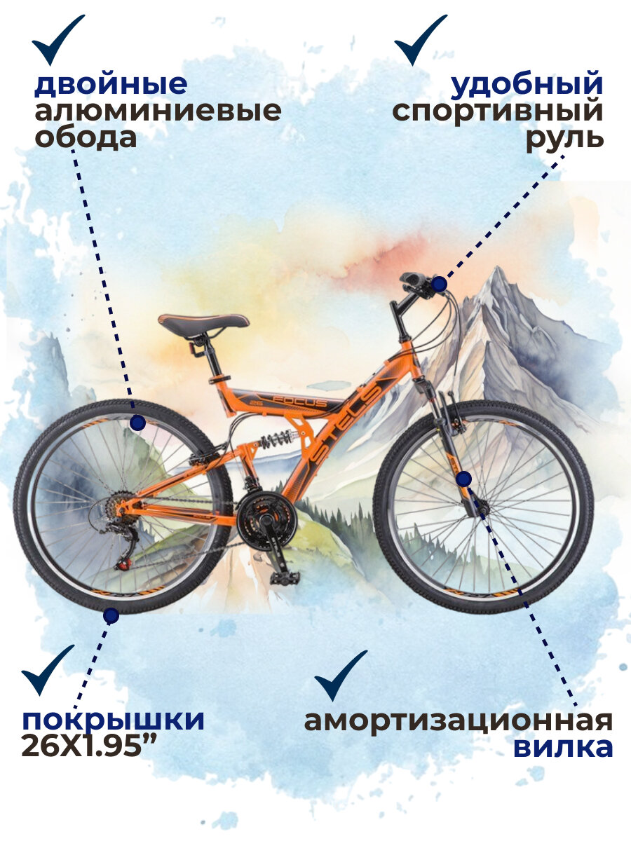 Велосипед Stels Focus V 26 18-sp V030 (2021) 18 оранжевый/черный (требует финальной сборки) 23 370 ₽