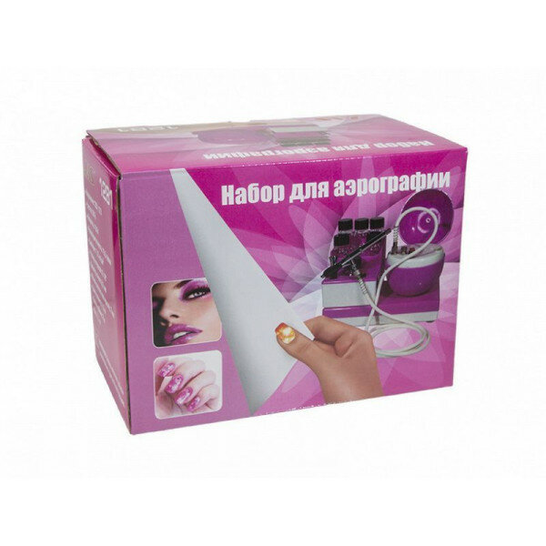 10 цен на Набор для аэрографии 1281, компрессор, аэрограф, шланг, смеситель, 6 баночек, шт