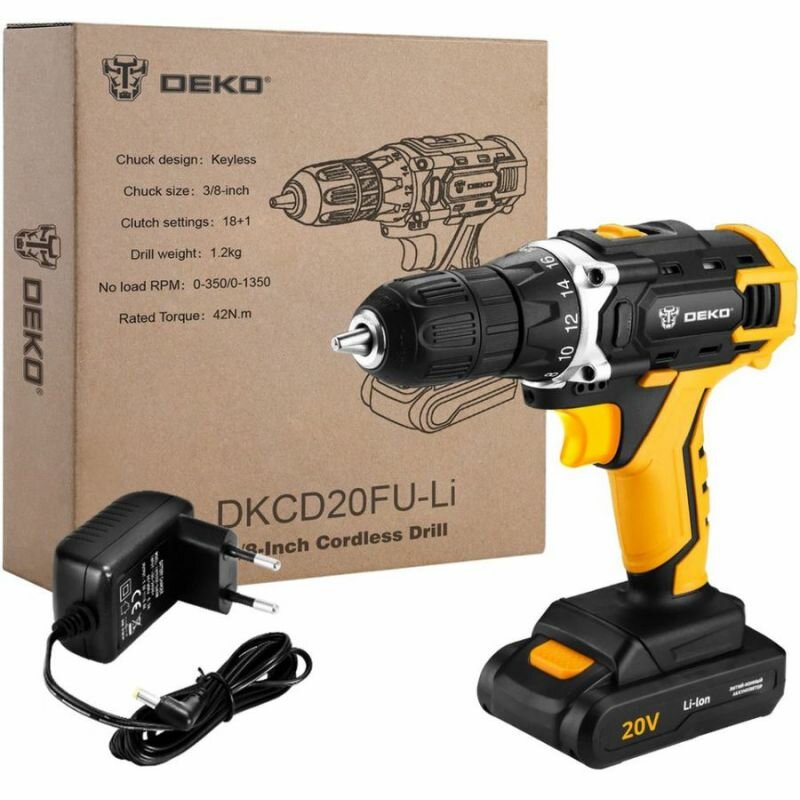 Дрель-шуруповерт DEKO DKCD20FU-Li, 1.5Ач, с одним аккумулятором [063-4102]