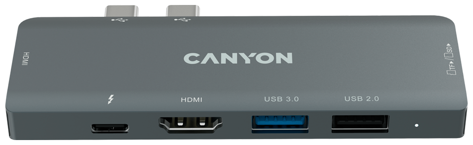 USB Hub Canyon DS-05 7 портов (Type-C 100 Вт, USB 3.0, USB 2.0, 2 x HDMI, TF, SD)