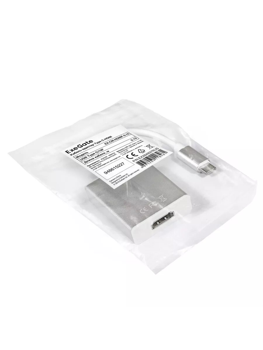Переходник USB Type-C - HDMI, ExeGate EX-CM-HDMIF-0.15 (EX284937RUS)