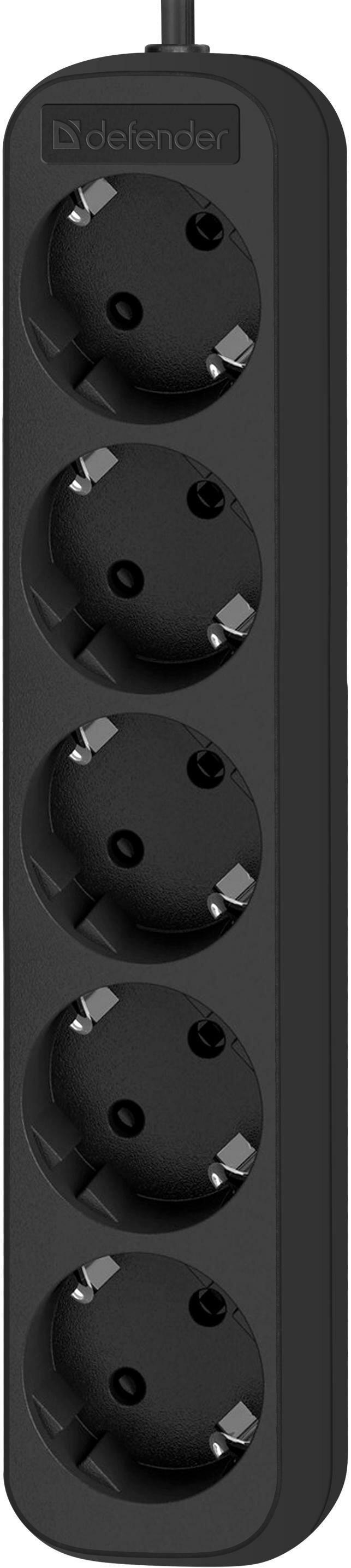 Удлинитель с заземлением Defender M518 1.8 м, 5 розеток, черный