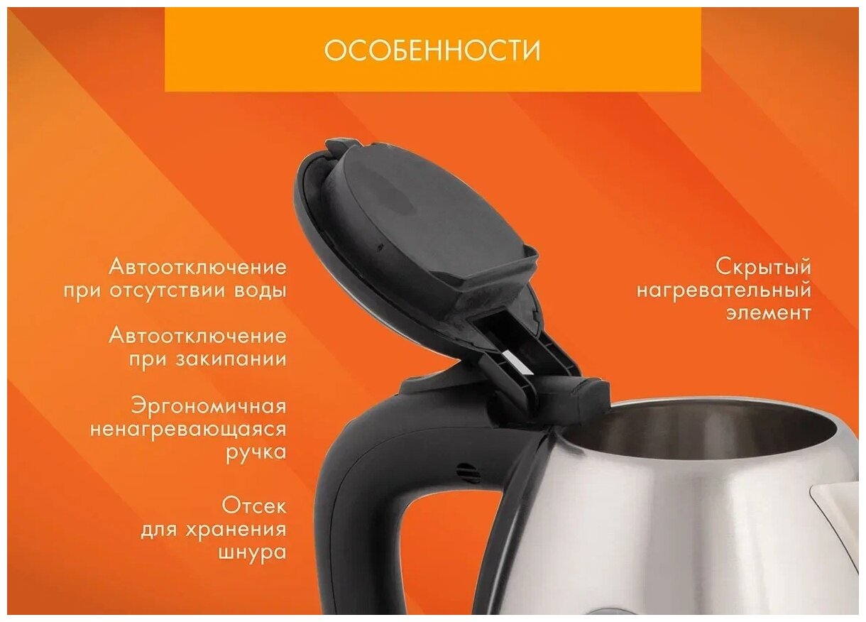 Чайник электрический Endever Skyline KR-220S стальной/черный информация: