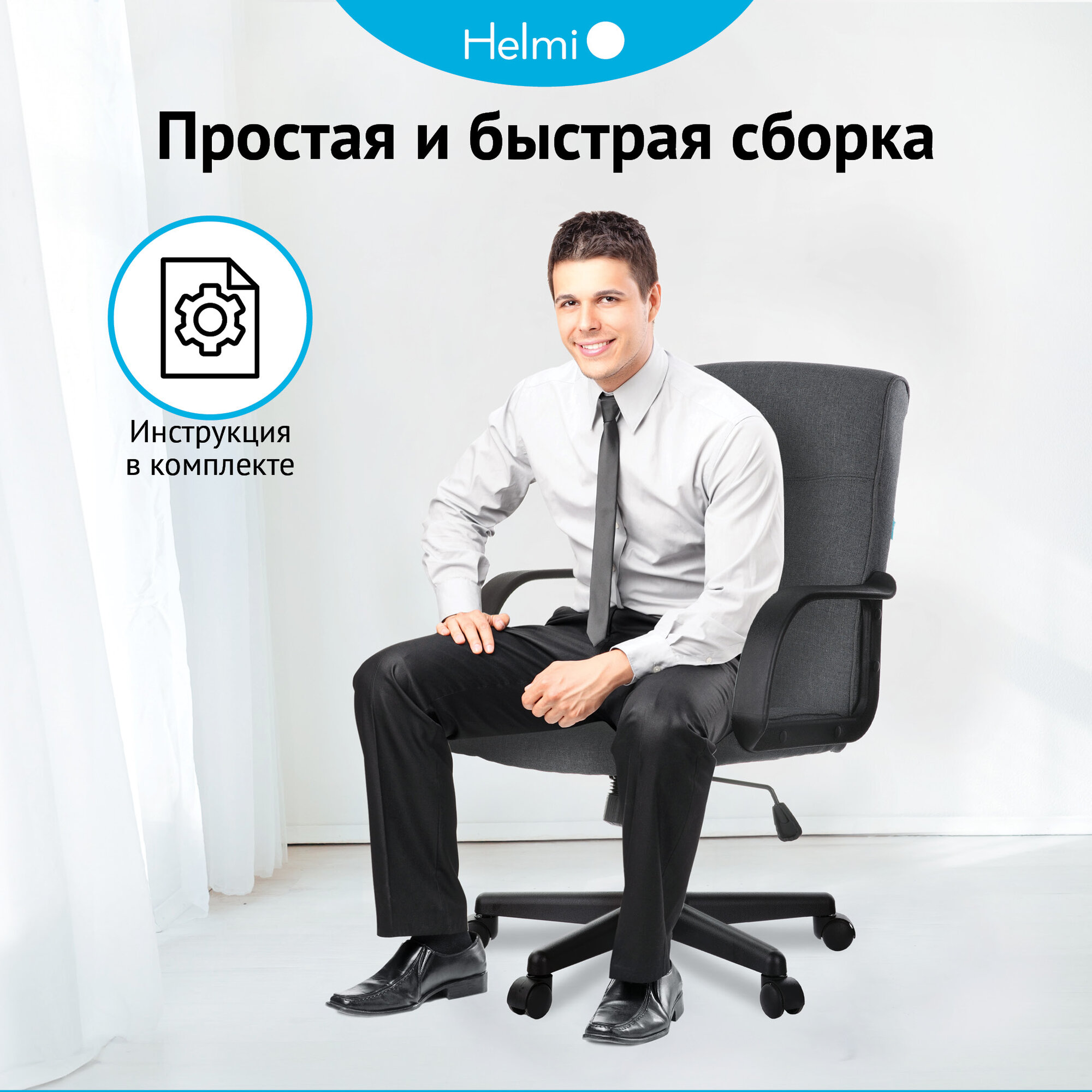 Компьютерное кресло Helmi HL-M03 "Referent"/Мягкое сиденье из серой ткани, с подлокотниками, на колесиках, с регулируемой спинкой/Офисный компьютерный стул, мебель для дома 9 444 ₽