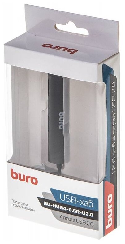 USB-концентратор Buro BU-HUB4-0.5R-U2.0, разъемов: 4, черный