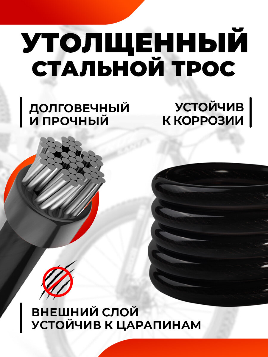 10 цен на Замок велосипедный Нора-М №20 6х800 (противоугонный, стальной трос 6мм, длина 80см) - Черный