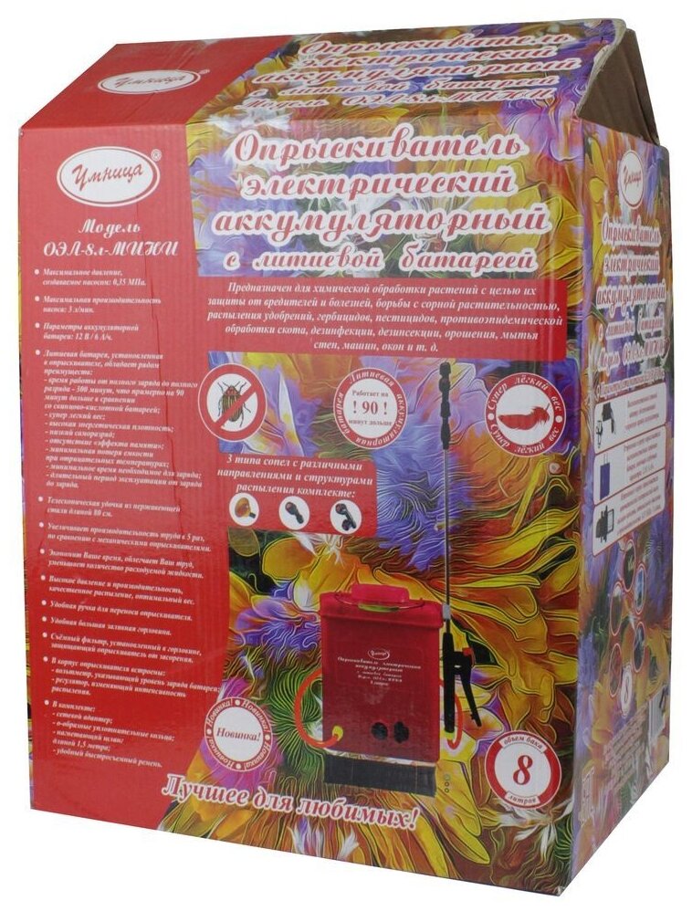 Опрыскиватель аккумуляторный "Умница" ОЭЛ-8-Мини 8л информация: