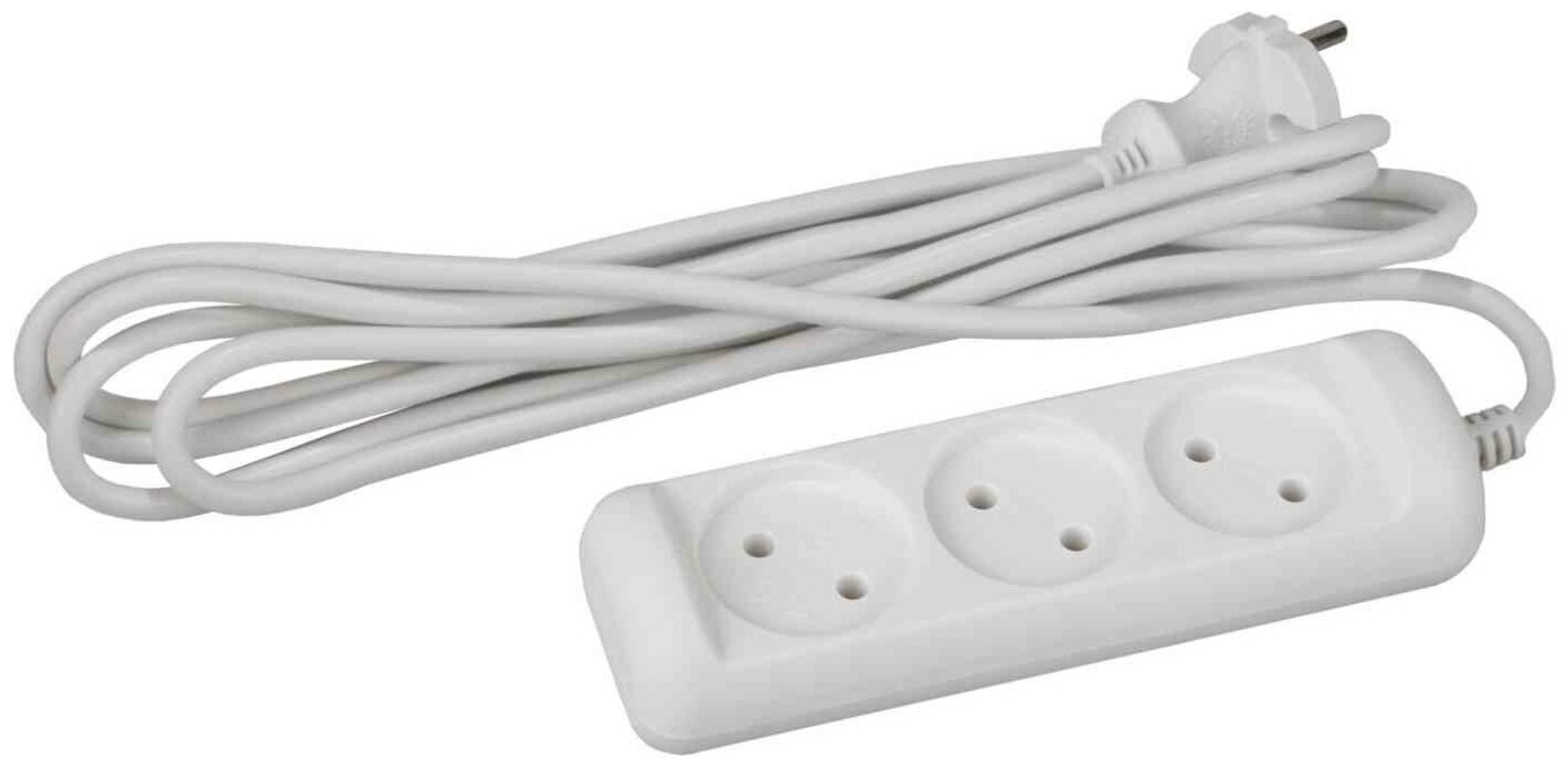 Удлинитель 3гн без З/К 1,5м белый 10А ПВС 2х1 U-3-1,5m ЭРА