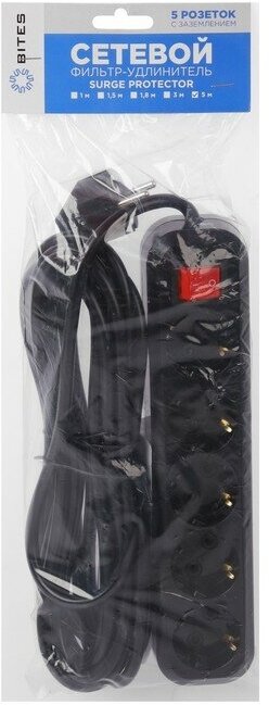 Сетевой фильтр 5bites SP5-350, 5 розеток, с/з, 16А / 3500 Вт черный 5 м 32 мм 12 мм 1.5 м² 5