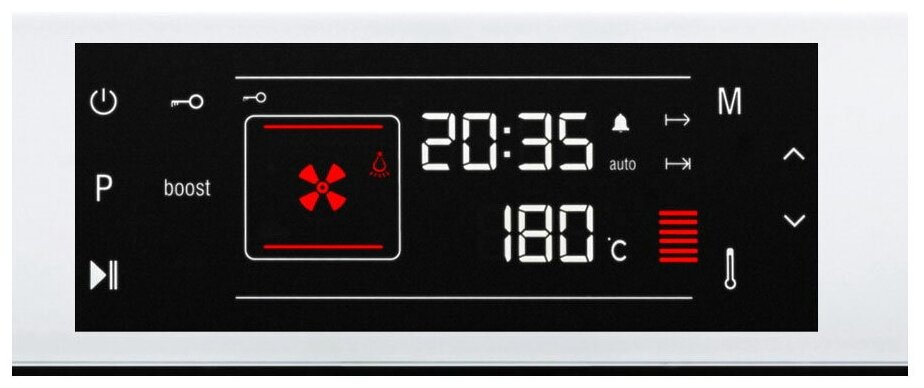 | Режимы нагрева | нижний нагрев, верхний нагрев, верхний нагрев + нижний нагрев, нижний нагрев + конвекция, гриль + конвекция, большой гриль, конвекция |