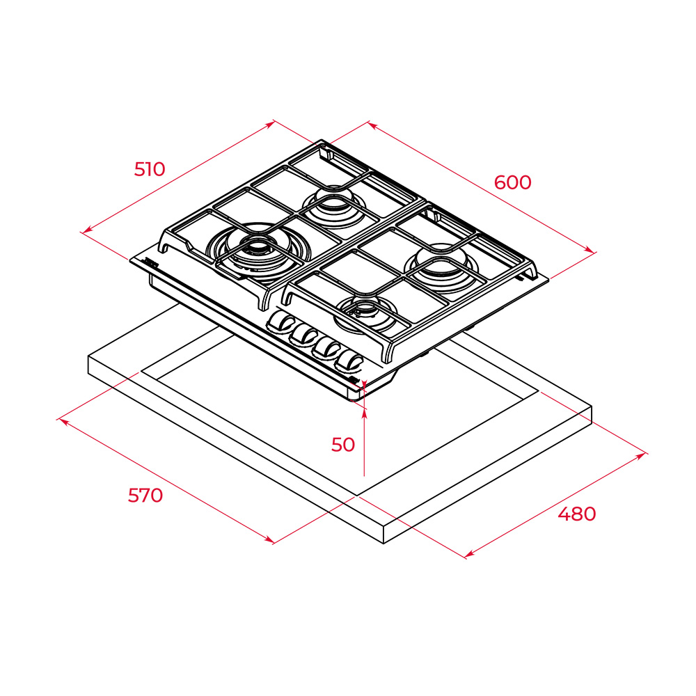 Варочная панель газовая FALKEN HG-623 , газ-контроль, чугунная решетка , автоподжиг