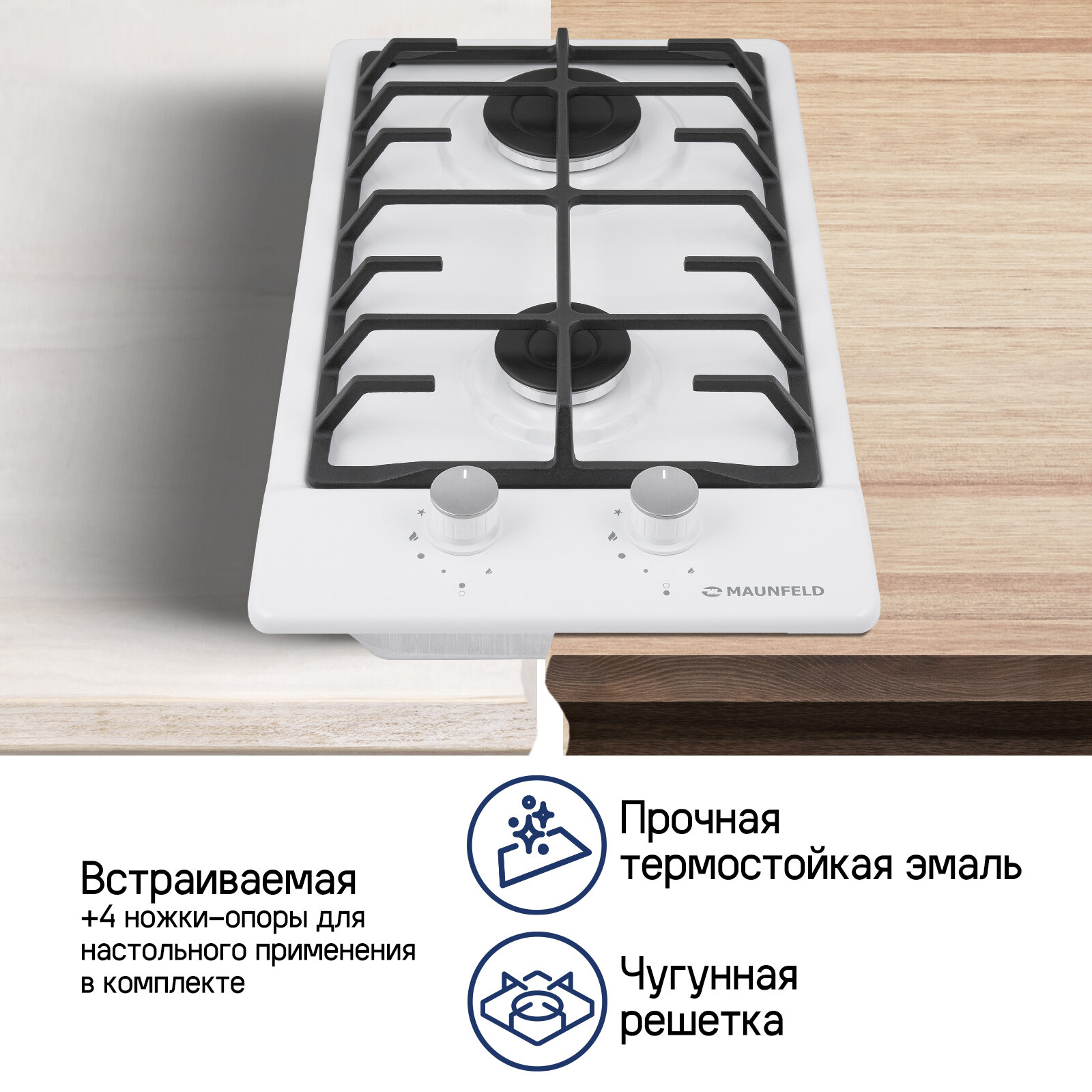 Газовая варочная панель MAUNFELD EGHE.32.6CW/G, независимая, белый 8 420 ₽