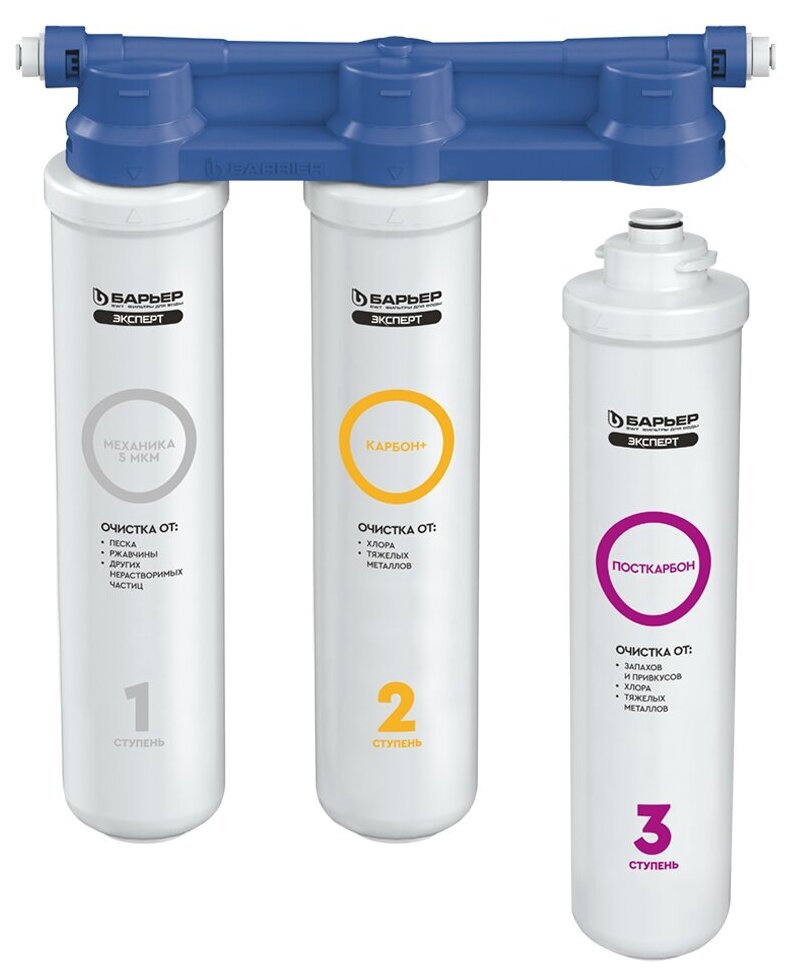 БАРЬЕР эксперт слим Классик, фильтр под мойку для очистки воды, очищает воду от хлора и вредных примесей, трехступенчатый, быстросъемный