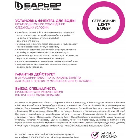 Фильтр для воды под мойку Барьер эксперт слим Классик информация: