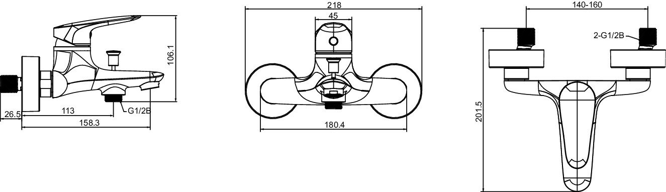 Смеситель на раковину настенный Эверест B46-350 с круглым поворотным изливом, кран-буксы 1/2", хром