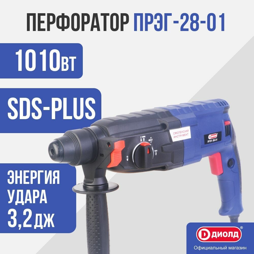 Перфоратор ударный диолд ПРЭГ-28-01 в кейсе / регулировка оборотов 0-1100об/мин, 1010 Вт, 5200уд/мин, 3,2 Дж, 3 режима, SDS+, производитель Россия 5 663 ₽