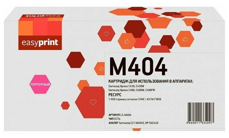 Easyprint Clt-m404s Картридж LS-M404 для Samsung Xpress Sl-c430/c430w/c480/c480w/c480fw (1000стр.)
