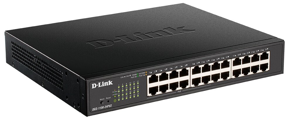 Коммутатор PoE D-link DGS-1100-24PV2/A1A 24x10/100/1000Base-T (12 портов РоЕ 802.3af/at, PoE-бюджет 100 Вт), L2 информация: